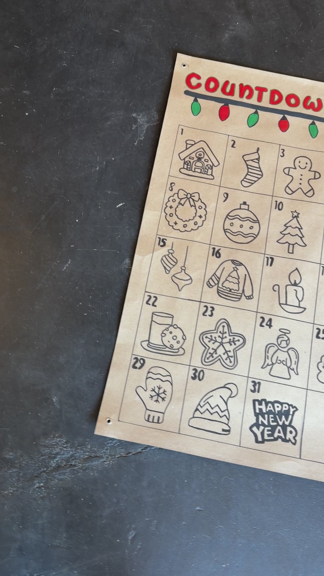 Add a festive, handmade touch to your holiday decor with this Countdown to Christmas coloring banner! Perfect for kids and adults alike!! Color each day up to Christmas and then the New Year!